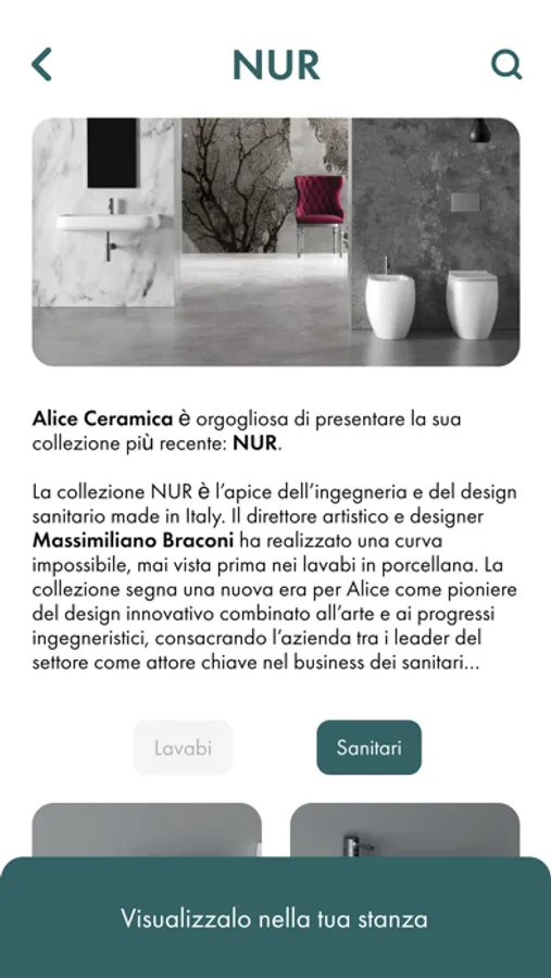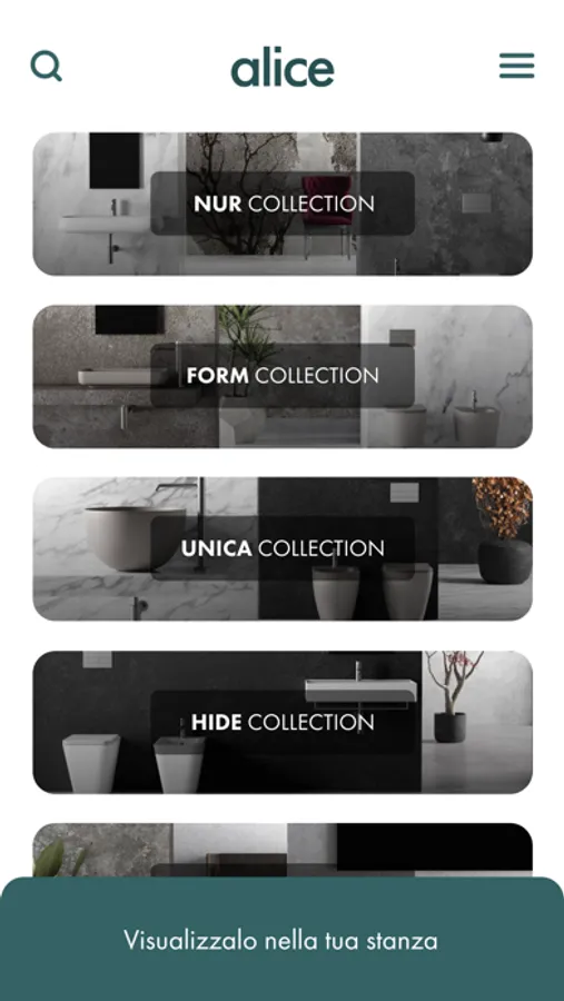 L’app di Alice Ceramica ti permette di inserire sanitari, lavabi e mobili in 3D ed in dimensioni reali nel tuo bagno. Ti basterà inquadrare con la fotocamera l’ambiente intorno a te e selezionare i prodotti per visualizzarli nello spazio.