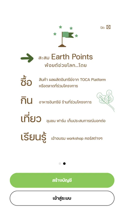 กระเป๋าตังค์ Earth Points ของคนกรีนๆ สำหรับรวมแต้มสะสม จากกิจกรรม รักษ์โลก ผ่านแอพพลิเคชั่นในเครือข่าย รวมไปถึง Organic Tourism เรียนรู้ และทดลองทำจริงถึงที่ฟาร์ม สามารถรับ Earth Points ได้ง่ายๆ จากทุกกิจกรรมที่เข้าร่วม พร้อมแลกของรางวัลมากมายจาก Earth Points wallet