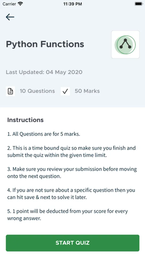 • Quizzes - Practice Quiz consisting of Multiple Choice Questions to assess your knowledge on Programming, Data Structures, Algorithms, C++, PHP, Java, Python, SQL, GATE, UGC-NET, HTML, C#, OS, DBMS, Theory of Computation, Computer Organization and Architecture, Engineering Mathematics, Aptitude and Reasoning, Puzzles etc.