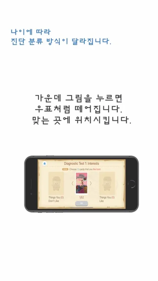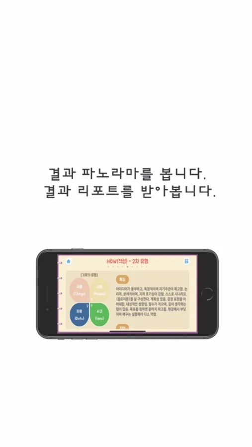 The results of the diagnosis are shown on the screen of the iPhone or ipad and can be used for lectures. In addition, information on an individual’s interests, aptitude, career recommendations, major recommendations, must read books and role models are comprehensively provided via emails that they can be used for schools and organizations in a variety of forms.