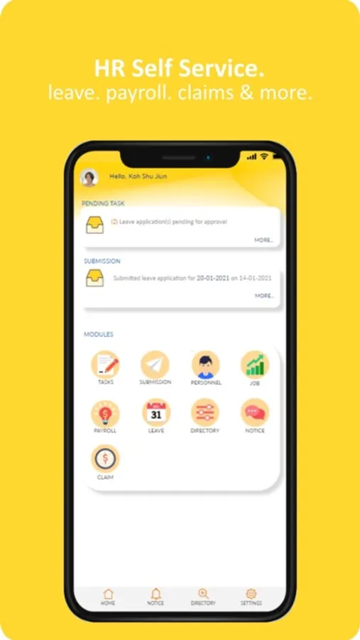 Features-packed employee self service mobile app that empowers employees to gain access to personal particulars, service records, payroll related information including but not limited to payslip. Applications and approvals can be performed with ease for leave submission, claim submission etc.