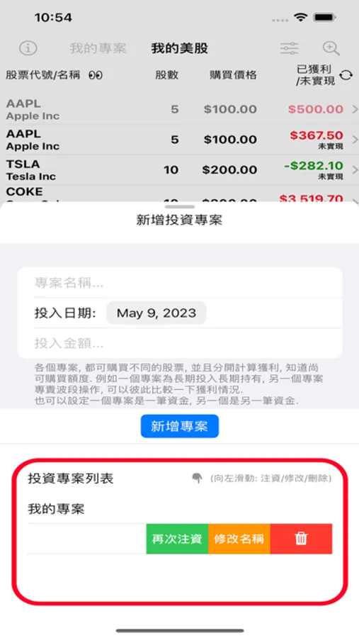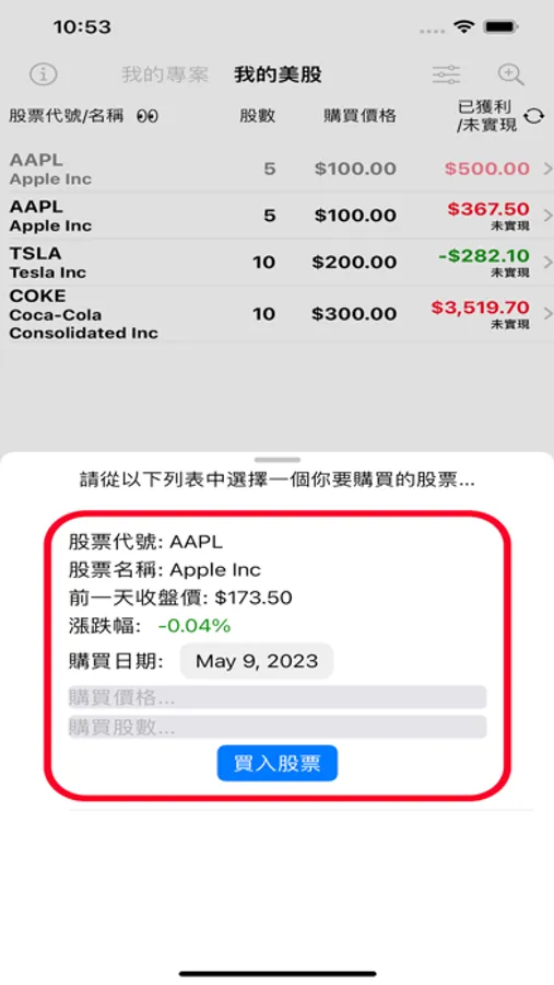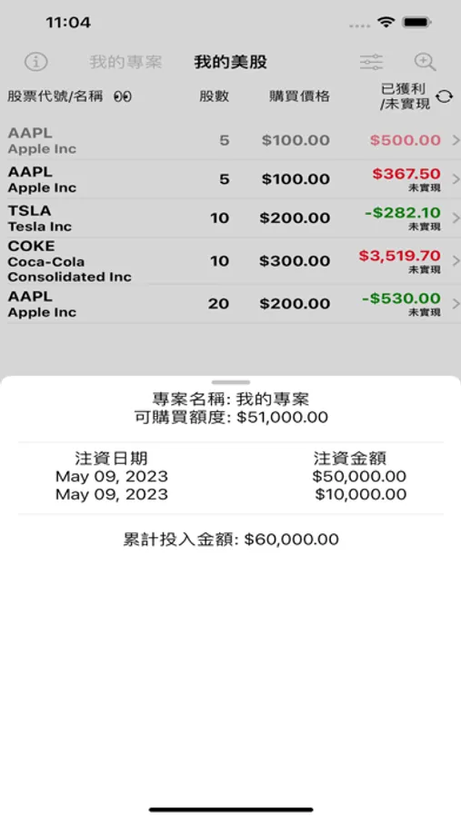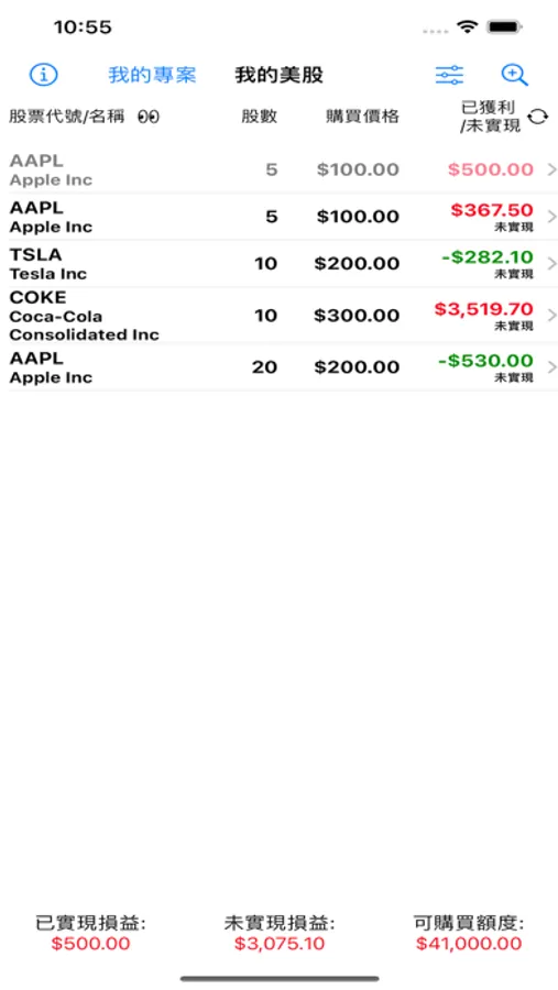8. 本App沒有計算券商的手續費, 因為我使用的是美國的德美利證券(TD Ameritrade), 他的買賣都沒有手續費.
