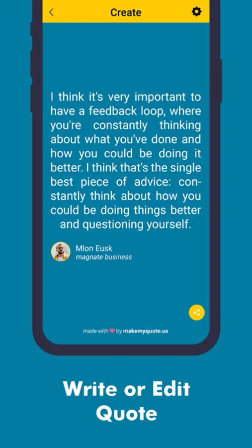 We made this app specially for people who love to create their own quotes. You can be creative without having any true creative abilities thanks to the different typefaces, backgrounds, and color tones available.