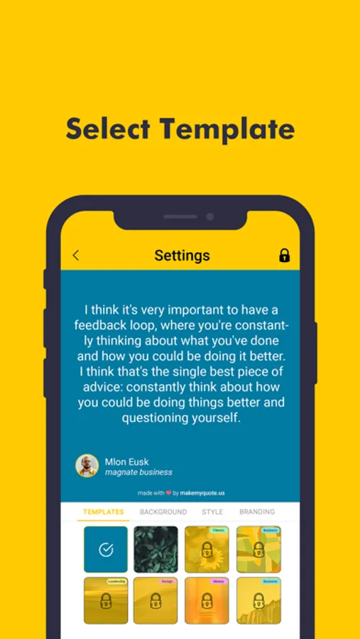 Branding - For branding purposes, you can add your own logo or image. To use the app’s full collection of background photos, additional font styles, and font colors, you need to purchase the premium package.