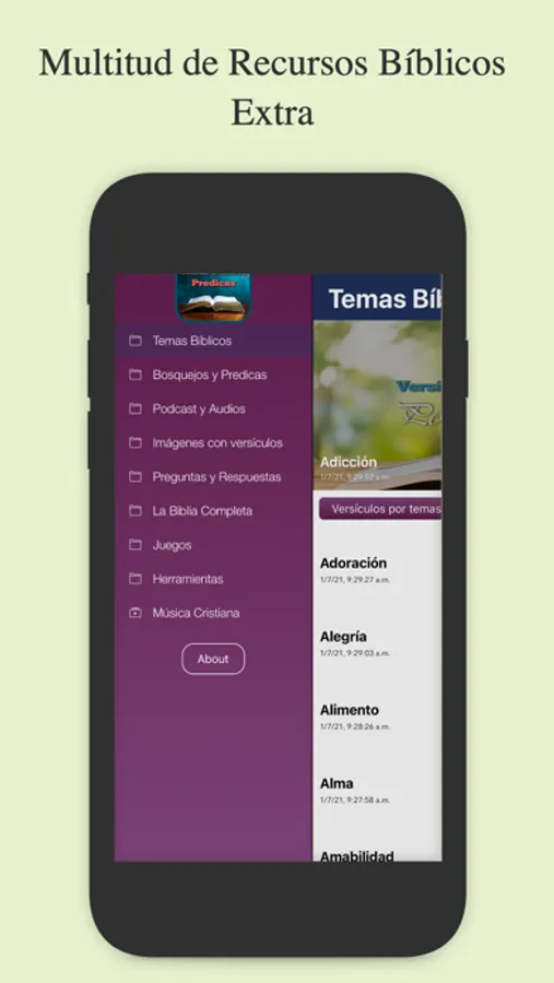 La Aplicación Temas Bíblicos y Predicas encontrarás todo tipo de recursos Bíblicos que te ayudarán a estudiar más en profundidad la Biblia o a predicar con el ejemplo en cualquier momento o lugar.