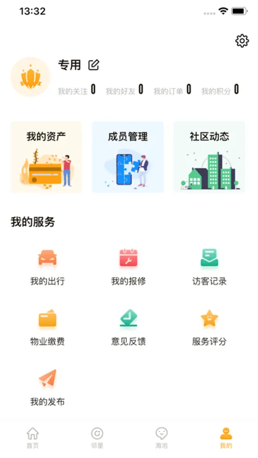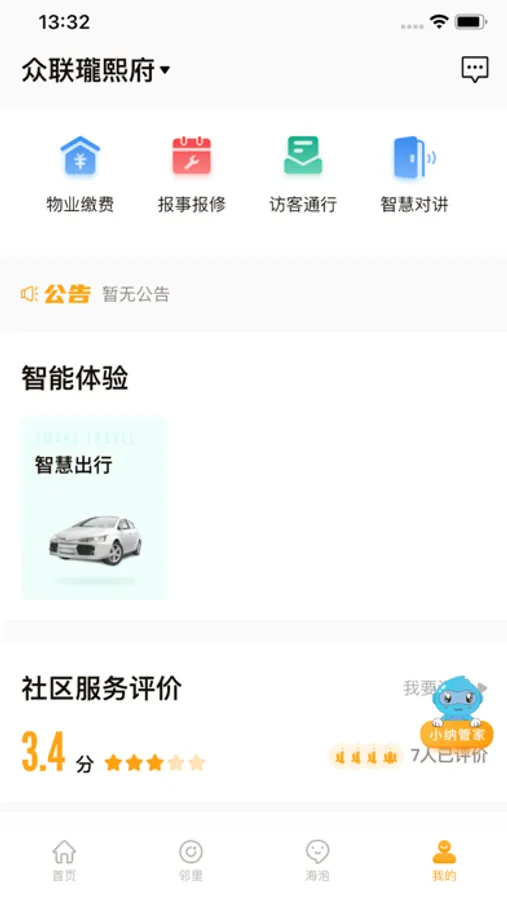 以用户需求为中心,集合智能互联功能、物业服务功能、社群交互功能