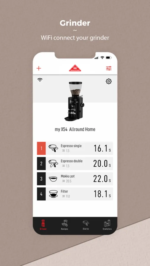 - Connect your X54 Allround Home Grinder via Wifi to the app. You can even connect multiple grinders