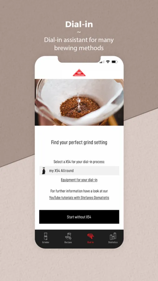 With the X54 Allround Home, home baristas of all levels have access to Mahlkönig's coffee grinding equipment and expertise. Learn how to adjust your new grinder to the appropriate grind size per brewing method and optimize coffee taste. Use the dial-in assistant as often as you like when you change to a different coffee type or brew method. Edit and adjust your recipes as you evolve through your home brewing coffee journey and update notes within each recipe.