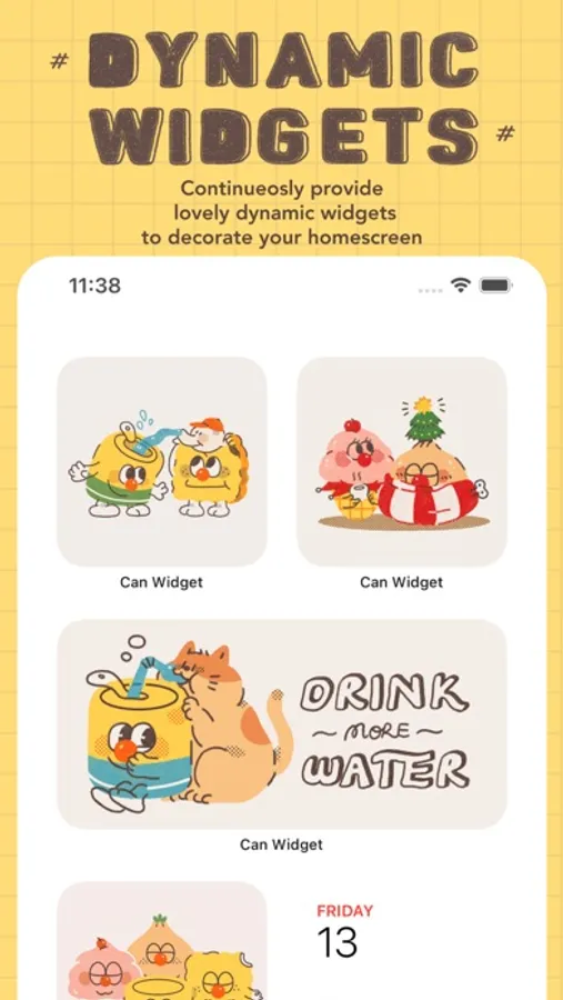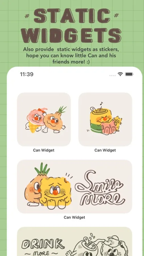 Hey guys! Different from other widget apps, the canned sticker app is authorized by an outstanding illustrator in order to prepare a beautiful dynamic illustration widget. No configuration required, add it directly to the desktop, and make your iOS desktop beautiful!