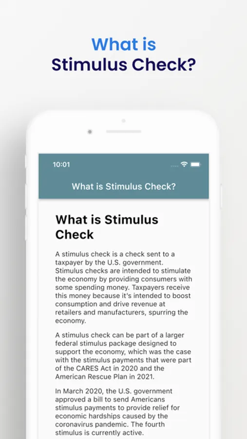 We have created this iOS application to solve all your questions about first, second, third, and forth stimulus check that the US government approved to all citizens who meets the requirements. Stand by and check periodically our app to stay updated, we will notice you if there is releasen a fifth stimulus check or other additional ones.