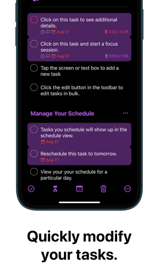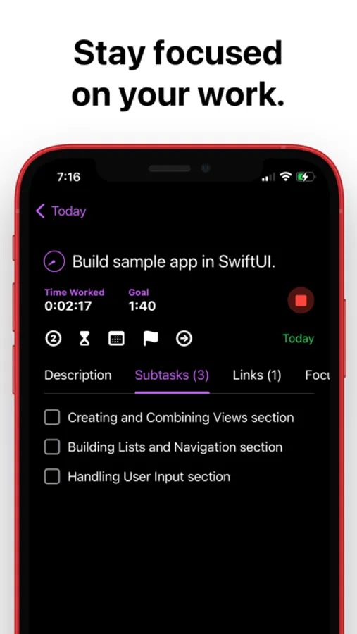 Personalize your tasks with notes, subtasks, and web links. Take a look at the Focus Sessions tab to see your work history for a particular task.