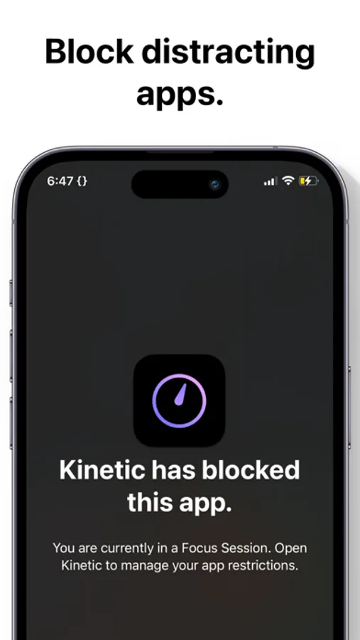Kinetic helps you stay focused on the task at hand by empowering you to block distracting apps and websites. This feature uses the Screen Time API to offer a privacy focused and native solution to blocking apps. Apps in Kinetic are blocked without the need for a VPN.