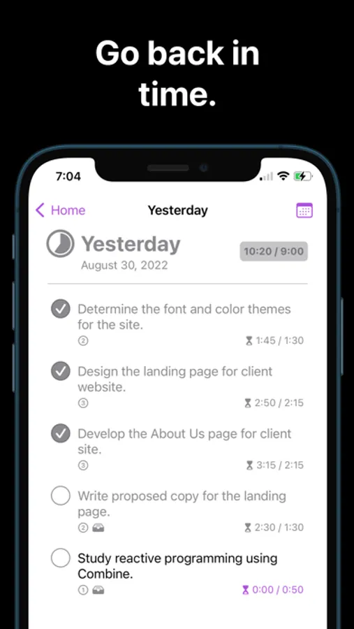 Take a look back at your scheduled work for previous days to see how well you're performing. Challenge yourself to see how many days in a row you can finish all of your tasks.