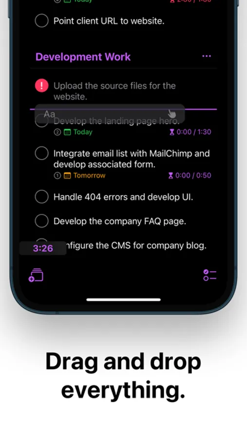 Plan out your day by adding tasks to your Schedule. Your Schedule is a space that helps you plan how much work you can complete in a given day. Fill up your day with tasks and challenge yourself to get all of your work done.