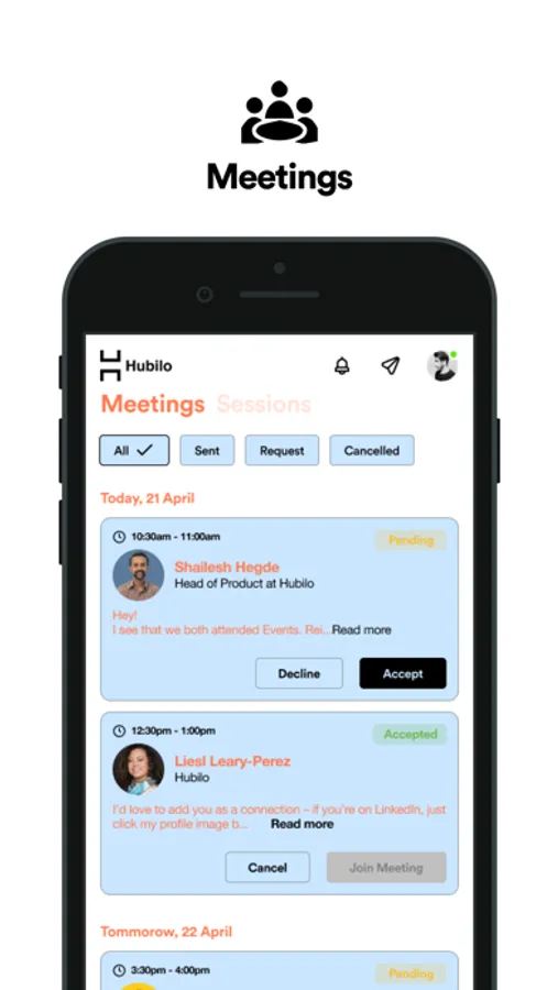 2) Set up meetings with potential attendees (investors, mentors, industry CxOs) by using the chat feature.