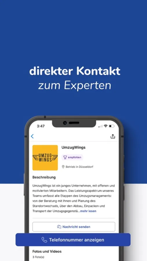 Du kannst den Experten mit einem Klick direkt anrufen. Oder telefonierst du nicht so gerne? Dann kannst du auch ganz einfach per Chat deine Fragen stellen und Termine vereinbaren.