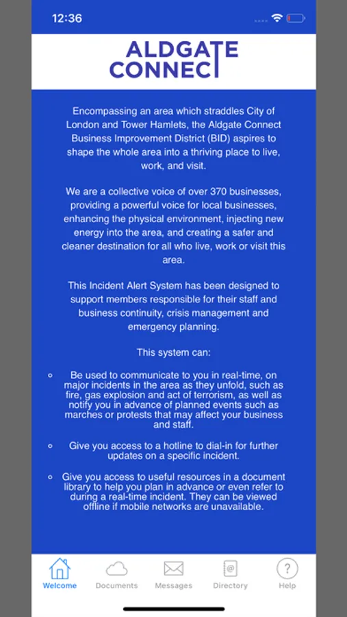 - Be used to communicate to you in real-time, on major incidents in the area as they unfold, such as fire, gas explosion and act of terrorism, as well as notify you in advance of planned events such as marches or protests that may affect your business and staff.