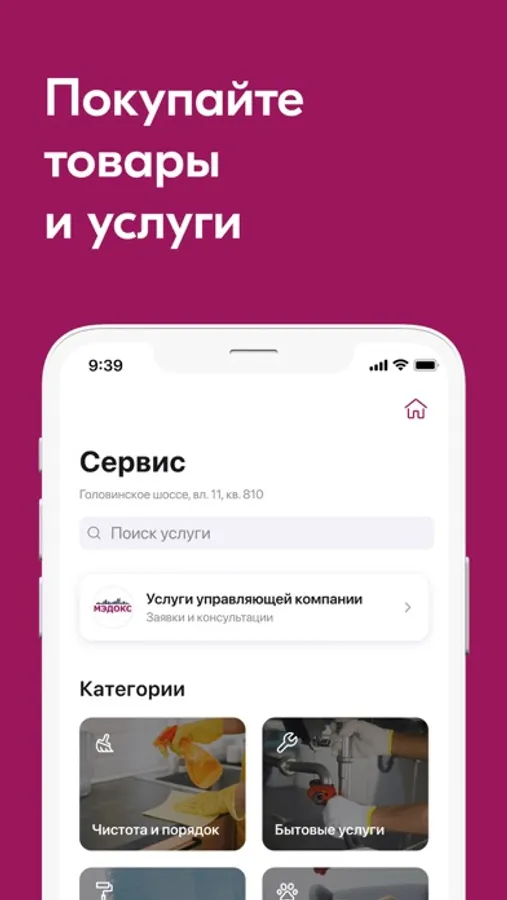 - Заказывать товары и услуги воду, цветы, ремонт окон и др.