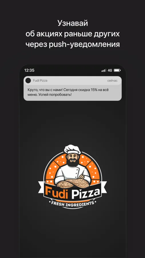 Приложение «Fudi pizza» - это приложение для доставки еды в вашем городе!