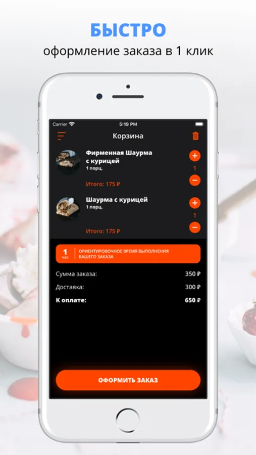 Скачивайте наше приложение, оформляйте заказ и наслаждайтесь любимой едой, где бы Вы ни были! Приятного аппетита!
