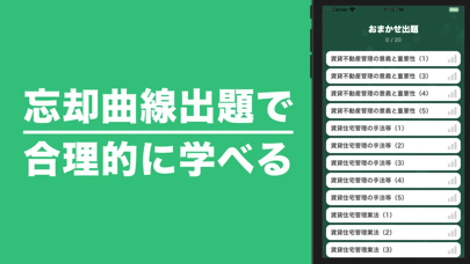 このアプリは、賃貸不動産経営管理士をテンポ良く効率的に学習するためのアプリケーションです。