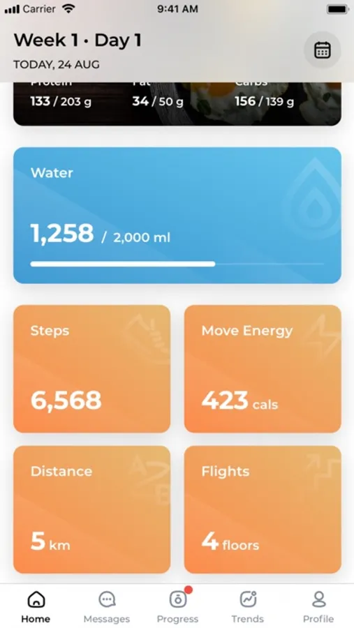 The app integrates with Apple Health to show your daily activity - distance, steps, active energy, and flights to help you better achieve your goals.