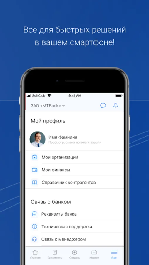 - подпись документов с помощью смс-кода и отправка их на исполнение в банк