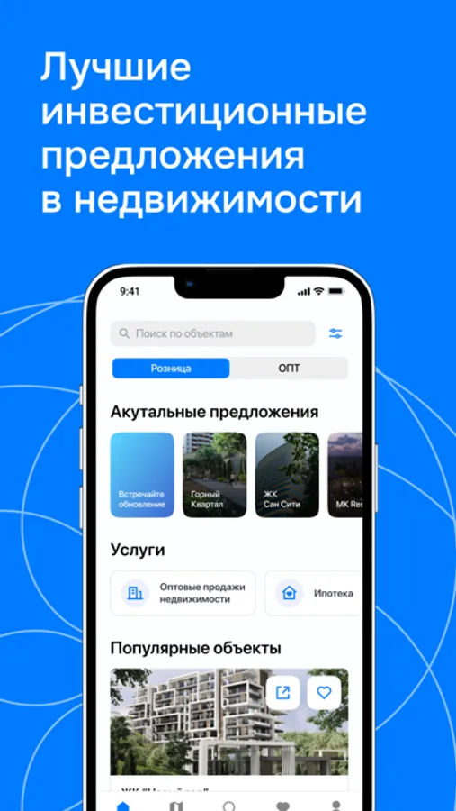 - представляющий экспертные выверенные предложения инвестиционной недвижимости: земельные участки, строящиеся и готовые объекты недвижимости;