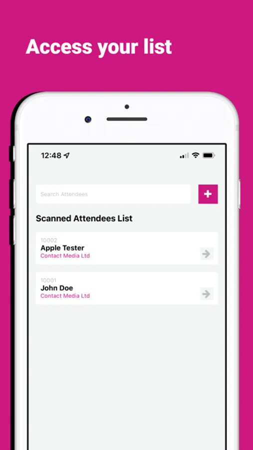 // Scan QR codes on visitor badges through your smart device to instantly access their personal contact details.