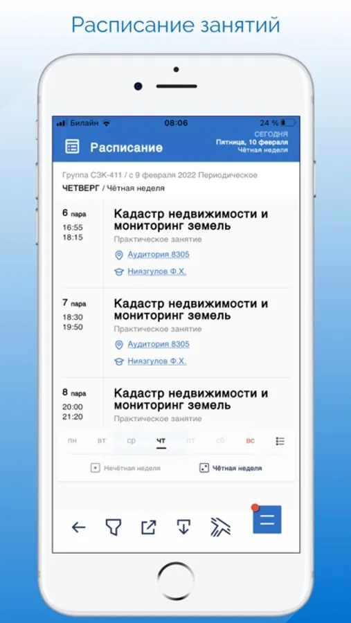 - Просматривать расписание занятий