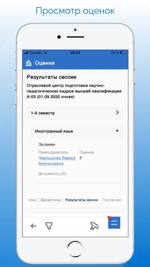 - Просматривать оценки (для студентов)