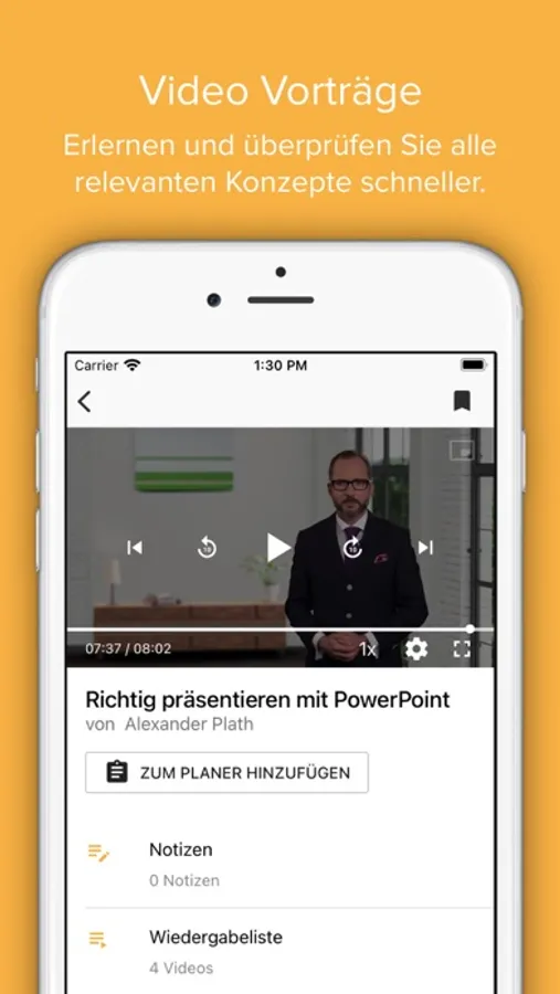 - Videovorträge: lernen und überprüfen Sie alle relevanten Konzepte schneller und einfacher