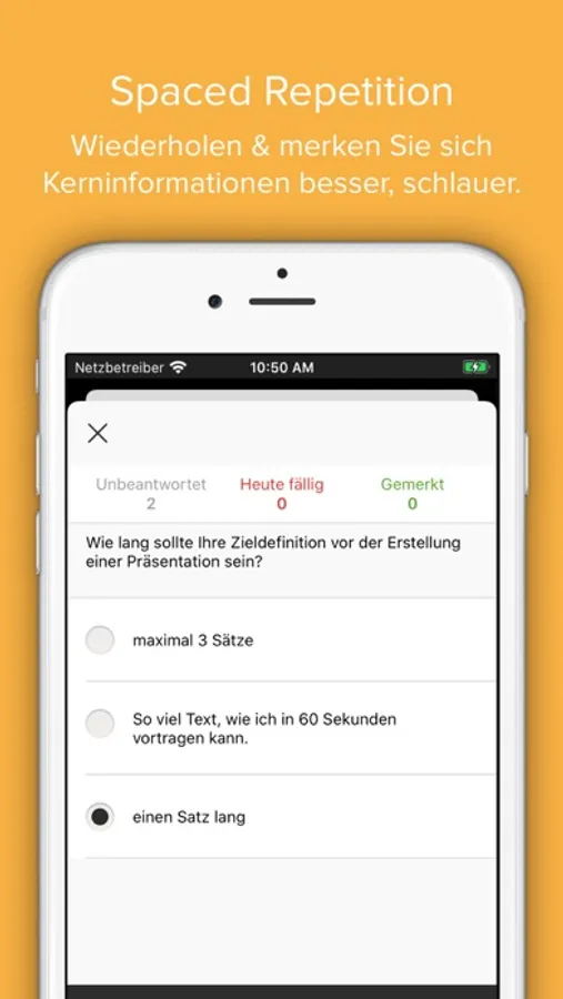 - Spaced Repetition Quiz: stärken Sie Ihr Wissen mithilfe eines intelligenten Lernalgorithmus