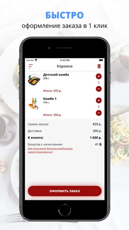 Скачивайте наше приложение, оформляйте заказ и наслаждайтесь любимой едой, где бы Вы ни были! Приятного аппетита!