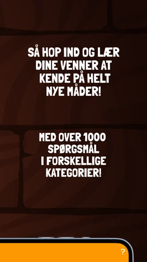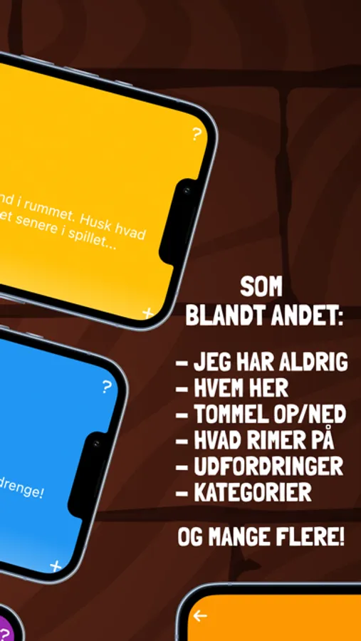 Her kan du indtaste jeres egne navne så spørgsmålene bliver individualiseret! Der er over 1000 spændende spørgsmål i alle nuancer! Alt fra 'jeg har aldrig' til diverse udfordringer i skal klare alene eller sammen!