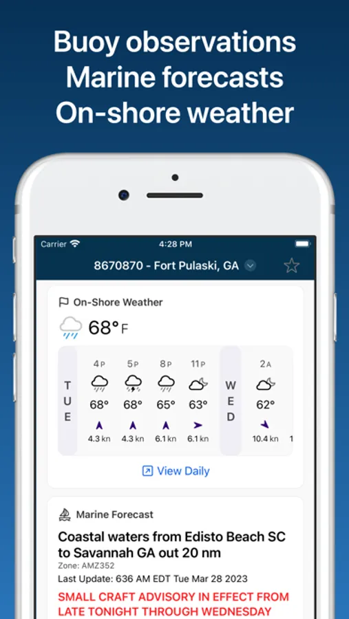 BuoyPro is a powerful marine weather app that shows live weather buoy observations, marine forecasts, on-shore weather, and sun & moon times that's also privacy conscious. Get the latest NOAA weather observations from over 800 weather buoys spread across the world's oceans. BuoyPro is a great companion as a boating app or sailing app, and provides great insight into boating weather/sailing weather/fishing weather.