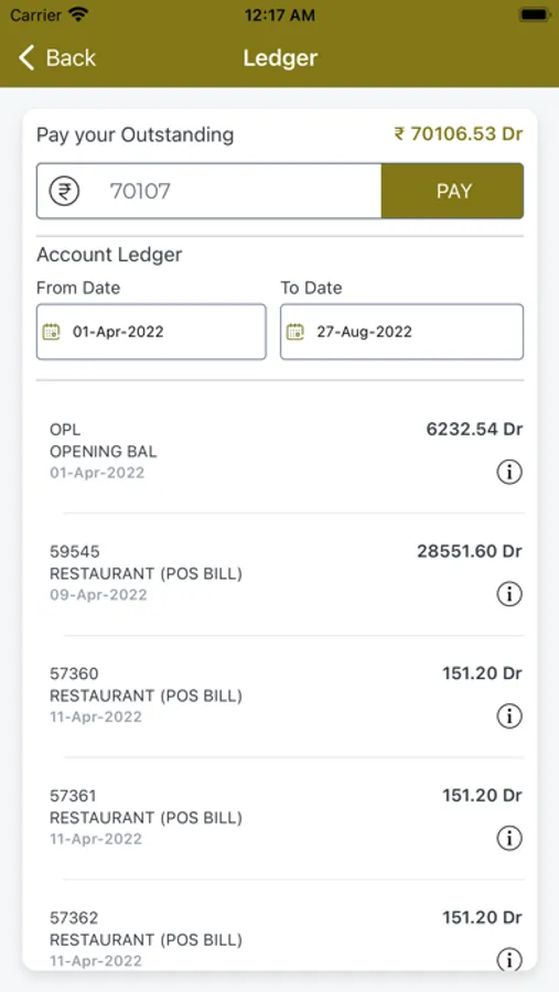 Dine in services at multiple locations in Restaurant, Deck Cafe, Lawn & Roof Top.