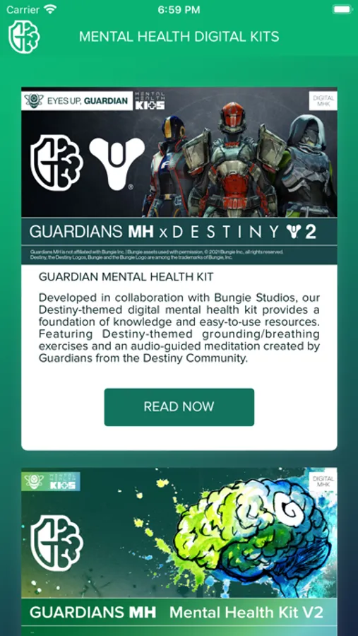 Access to every Digital Mental Health Kit is now accessible in one place directly from the Guardians MH app. Each digital kit is filled with focused resources like grounding and breathing techniques, self-care tips, gamer workout programs and much more.