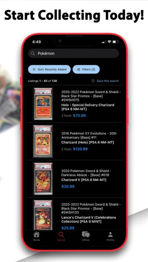 Recently Viewed- Quickly and easily browse cards that you have recently viewed with this dedicated section on our app.