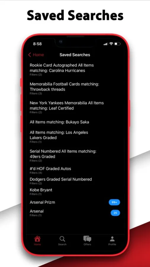 Saved Searches- Do you have a favorite team, player, set or other specifics you are constantly hunting for? Our Saved Search feature allows you to run your desired search at the click of a button!