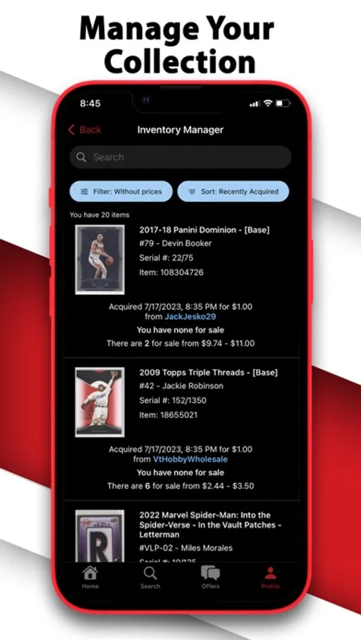 Manage Offers- Incoming and outgoing offers are clearly displayed and are easily monitored from our Manage Offers section. Send offers and navigate deals!