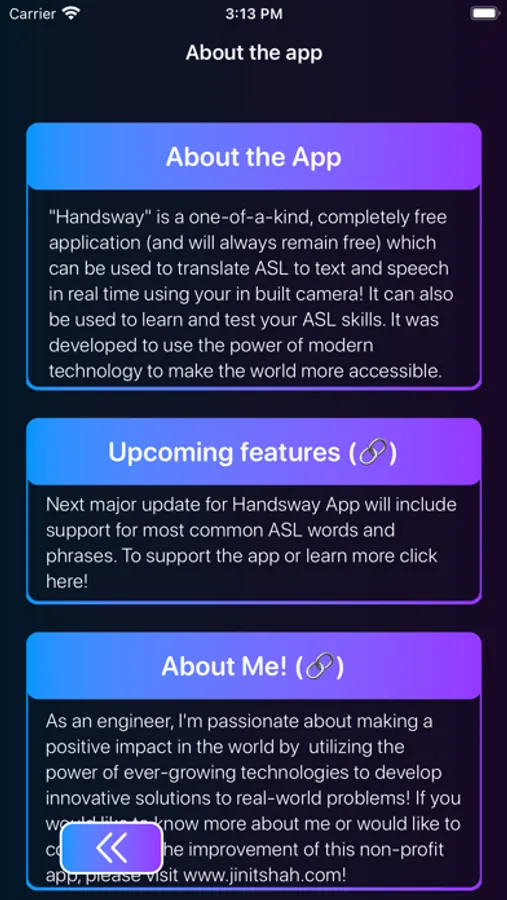In order to increase the accessibility of this application, we have removed the need for users to log in or sign up, eliminated ads and the option for a premium version, and made the app fully available offline at no cost to users worldwide. In addition, we prioritize user privacy and therefore all machine learning models are run on device, with NO data being sent from the user's device to Handsway servers. Learn more at www.renee.app/handsway.