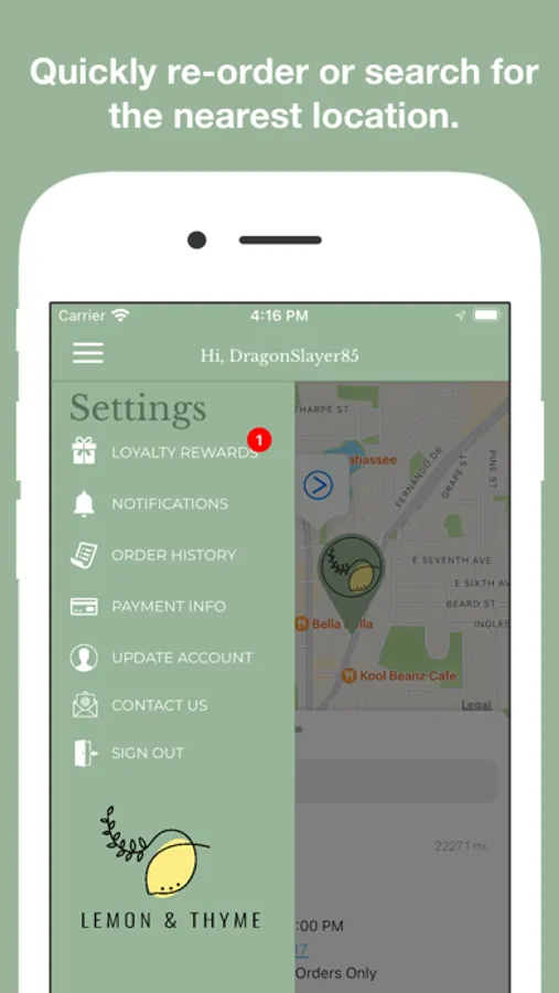 Order ahead with the new Lemon & Thyme app. Download today so you can start earning free food and catch the latest happenings.