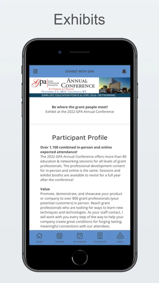 The official mobile app for the GPA Annual Conference has everything you need to navigate, connect, and discover all that the conference has to offer. The Grant Professionals Associations Conference is THE Premier Conference for Grant Professionals. Download the mobile app to: Discover the sessions you want to attend and then build your own schedule. Connect with other conference attendees as well as see what’s trending on social media. Map out your plan for visiting GPA’s sponsors and exhibitors. Browse all the latest conference news and program updates.