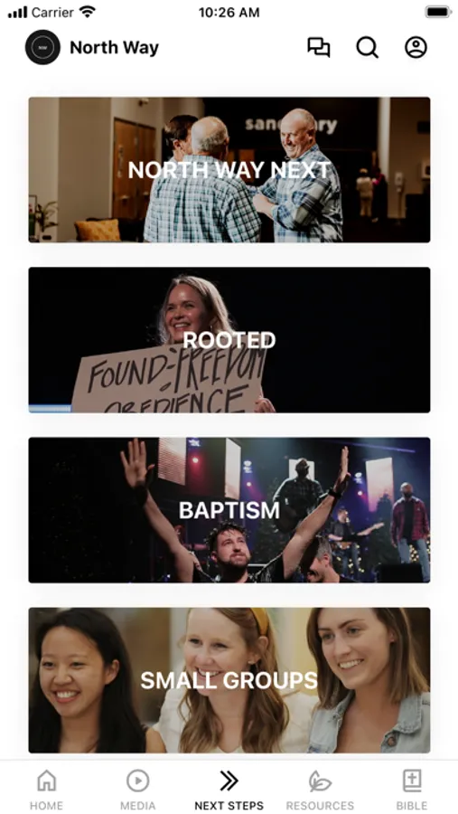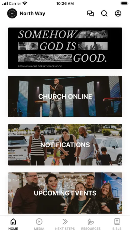 This app will help you stay connected with the day-to-day life of North Way Christian Community. With this app you can: watch or listen to sermons; tune into a live service, request prayer, stay up to date on North Way events; find a small group; give online; find your next steps; and more!