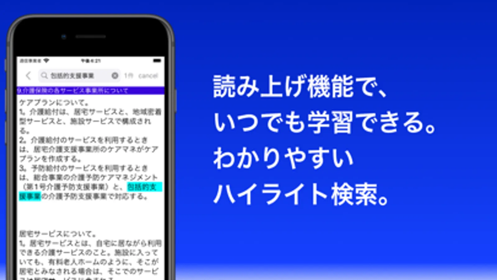 ケアマネの各科目を、15分程度のテキストにまとめています。スピーチ機能を使用して、手軽に勉強できるアプリを製作しました。