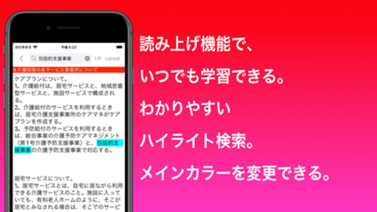 ケアマネの各科目を、15分程度のテキストにまとめています。スピーチ機能を使用して、手軽に勉強できるアプリを製作しました。広告がなく、快適に学習することができます。更新も有料版を優先して行います。