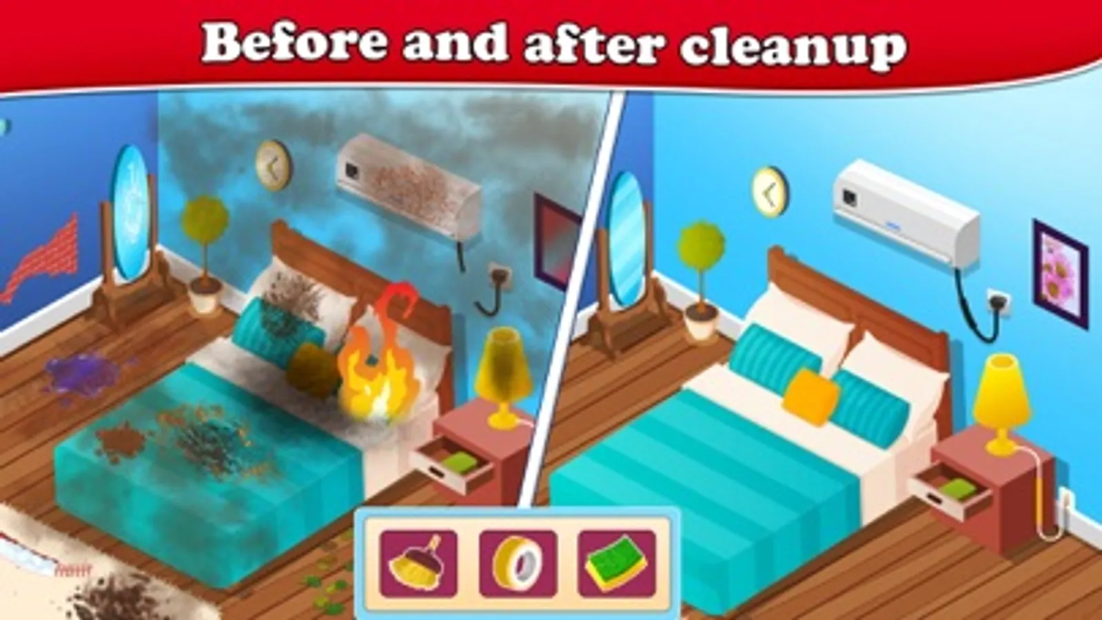 You have ruined houses, glow them again like a royal magic mansion. Fill the cracks, fix the floor, repaint the wall, restore CCTV cameras and clean everything to make home shining again. Restore wonderful home to its former glory. Explore some repairing ideas and become a hero of brand new story. Build your dream home and amusement park for free but be careful to use the right tool because you have got limited life. Makeover destroyed house, restore everything and convert into a beautiful house for free!