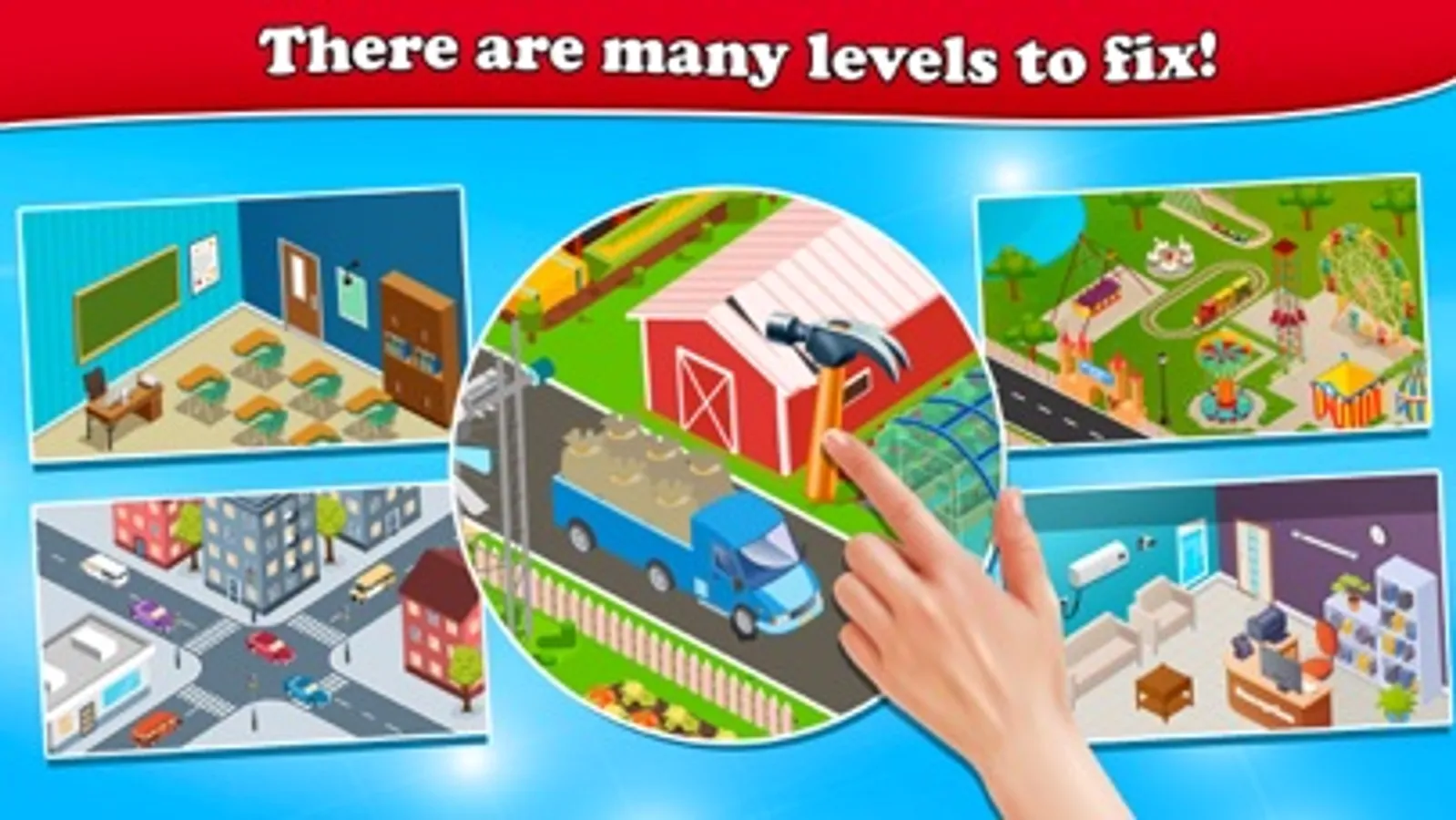 Find it Fix it, that is you have to find the damaged area of house or anywhere in the town and fix that using right tool. Rescue your house by playing this sweet escape new games. Repair the landscape you got in this game like amusement park, city area, car garage, office reception, house and much more! Your Hotel restore episodes and home stories are to be written with golden words when you become a restoration tycoon. This puzzle restorer game offers and become repair master. Redesign your house to your fantasy homes using your creative ideas. Your satisfying repair art and cleanup ideas will help you in strategic game.