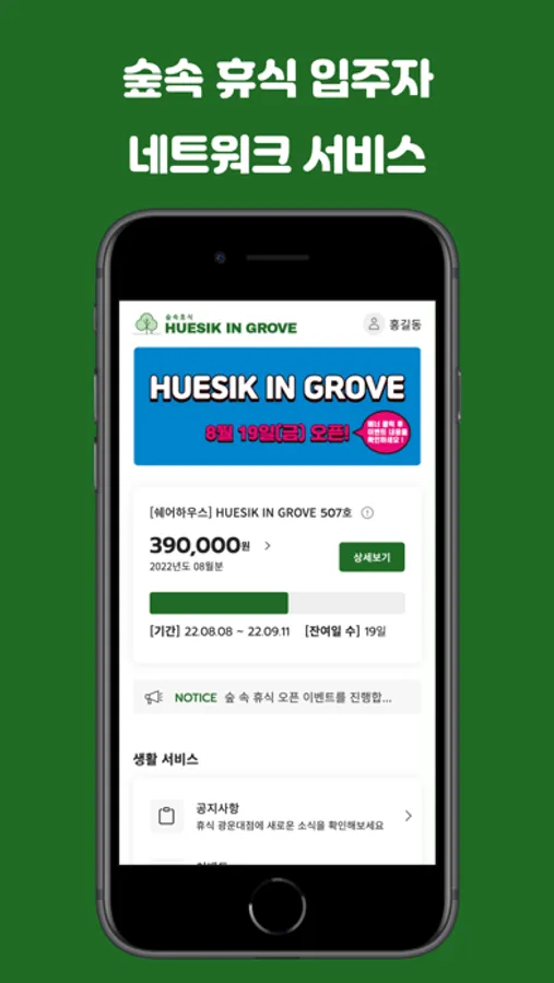 HUESIK IN GROVE 입주자를 위한 네트워크 서비스입니다.